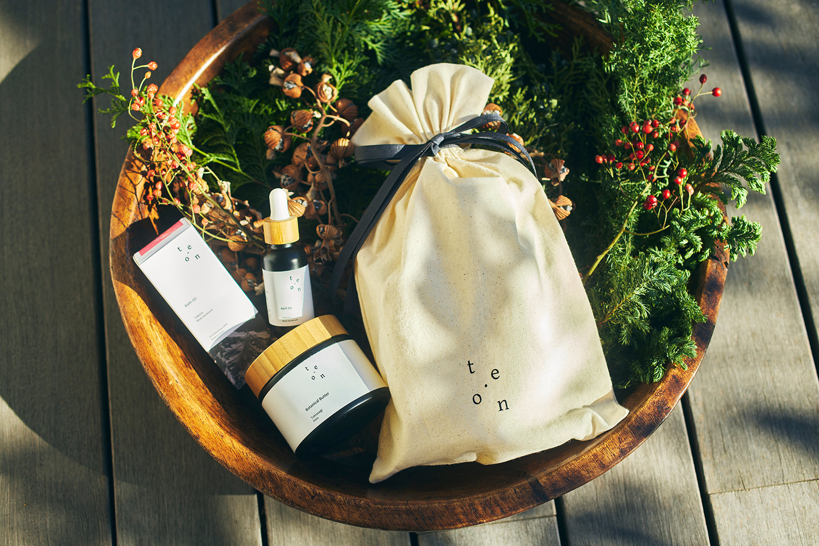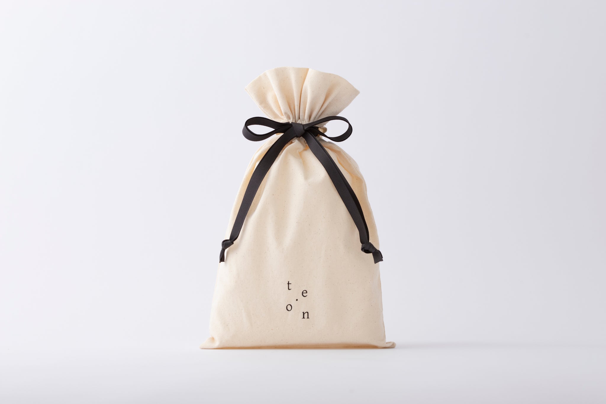 te.onロゴ入りのオリジナルコットン巾着。